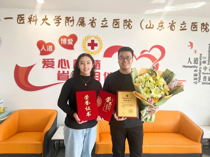 2023年,在济南市第五东谈主民病院组织的无偿献血行动中,爱妻二东谈主不仅一同参与无偿献血,更相约捐献了造血干细胞检测血样,联袂成为中国造血干细胞捐献者尊府库的一员。他们深知,关于好多血液病患者来说,造血干细胞移植是重获壮盛的唯独但愿。因此,刘泽正绝不游移地伸出了援手,但愿有一天草率用我方的力量扶持一个人命。
