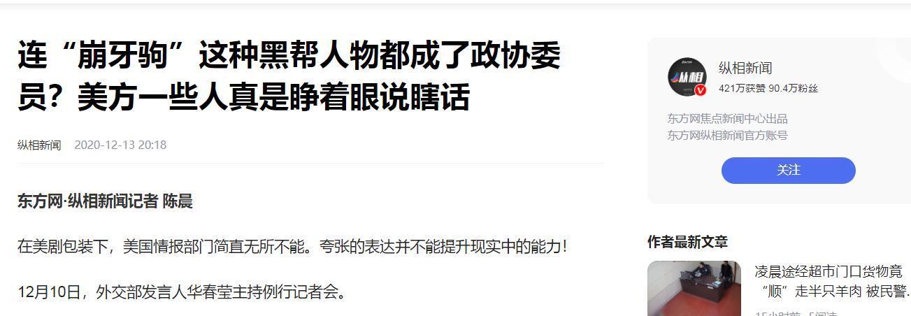2.连“崩牙驹”这种黑帮东谈主物都成了政协委员?好意思方一些东谈主确切睁着眼说瞎话——纵相新闻2020-12-13 20:18