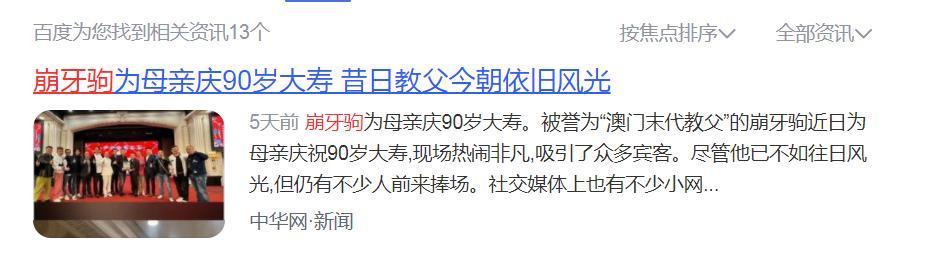 1.中华网:崩牙驹为母亲庆90岁大寿 昔日教父今朝依旧表象 2024.12.30