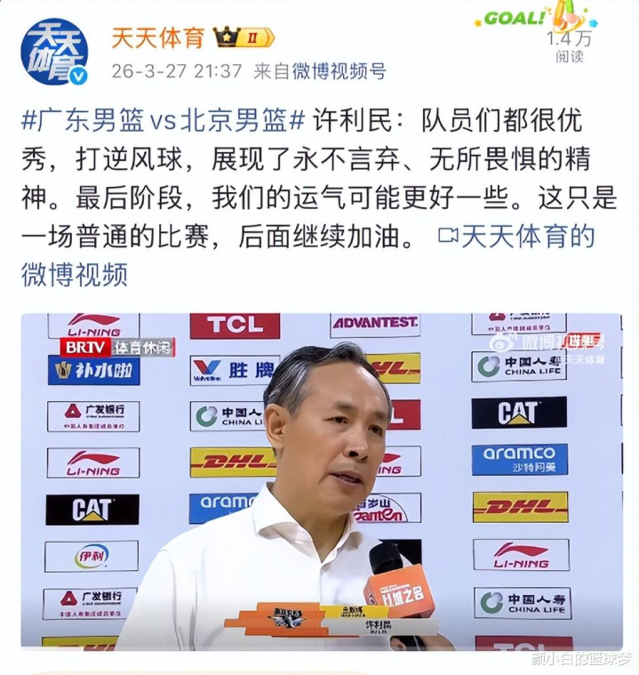 广东VS北京的这场比赛注定载入北京队汗青,开场北京1-16的悲讯开局,第二局开场广东照旧朝上北京20分之多,重要这如故广东的主场,阿谁声浪袭击特殊恐怖,许利民的目光暴露着改悔,可没念念到临了北京逆转得手了!许利民版块的“20分算个屁”横空出世。